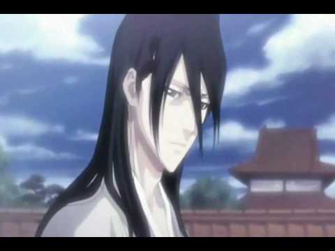 Gdy wyszłam z salonu obowiązkowym, dostojnym krokiem, obok jakże znanej mi chudej postaci w odcieniach mocnej czerwieni stał dość wysoki mężczyzna. Posiadał średniej długości czarne włosy i niezwykłe fioletowe oczy, natomiast ubrany był w strój Shinigami czyli czarną yukatę, kapitańskie haori oraz turkusowy szal. Trzeba przyznać, że jest przystojny..